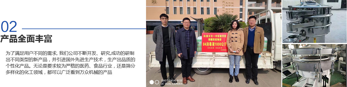 新鄉(xiāng)市萬眾機械設(shè)備有限公司是生產(chǎn)振動機械、篩分設(shè)備和過濾設(shè)備的專業(yè)廠家之一,擁有生產(chǎn)設(shè)備、雄厚的技術(shù)力量、完善的檢測手段、嚴格的管理體系。是河南省的商標之一,被河南省科學技術(shù)廳頒定為高新技術(shù)企業(yè),為新鄉(xiāng)市“守合同重信用企業(yè)“。質(zhì)量信得過產(chǎn)品、質(zhì)量服務(wù)消費者滿意企業(yè)、合格產(chǎn)品等榮譽稱號。擁有自主進出口經(jīng)營權(quán),產(chǎn)品遍布各地,并遠銷北美、西歐及東南亞等地區(qū)。